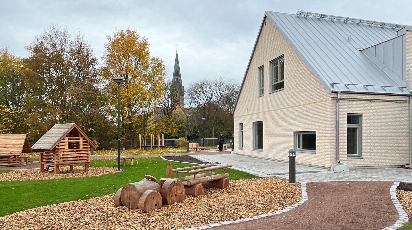 Förskolans vision och mål är hållbarhet och kulturmiljö. Här ska barnen få en härlig miljö med mycket utevistelse. Tomtens befintliga fina grönytor behålls i så stor grad som möjligt och används i den pedagogiska verksamheten. Tema för utemiljön är odling och förskolan byggs på en tidigare trädgårdstomt där det i södra delen finns fruktträd bevarade. På fastigheten låg tidigare en befintlig byggnad ”Rusthållaregården” från mitten av 1800-talet. Förskolan utförs i ett och ett halvt plan med sadeltak och vitt tegel. Till förskolan byggs tre komplementbyggnader. Miljöhuset och uteförrådet utförs med återbrukat mexitegel och återbrukade dörrar.